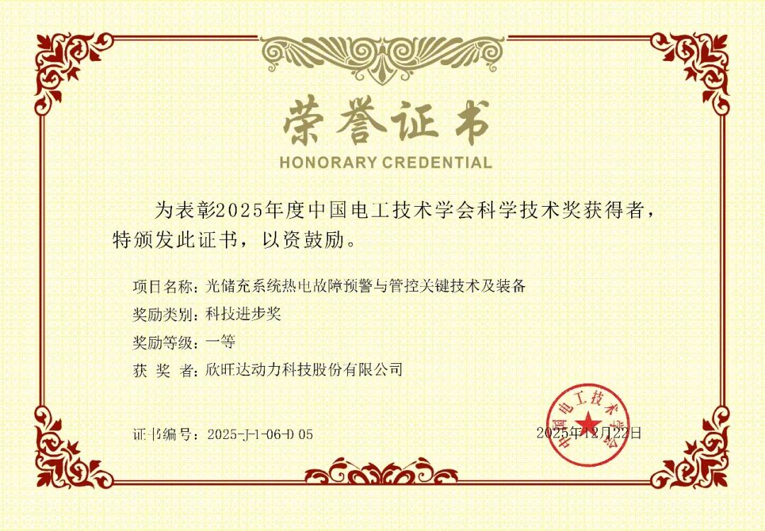 “中国电工技术学会科学技术奖”是经国家科学技术奖励办公室批准设立的权威奖项,代表行业顶尖创新水平。在此次评选中,由国网上海市电力公司牵头、欣旺达动力与上海交通大学、广东工业大学等单位共同申报的“光储充系统热电故障预警与管控关键技术及装备”项目荣获一等奖。该项目从全国众多高水平成果中脱颖而出,充分体现了企业在新型电力系统与能源数字化领域的创新策源能力。